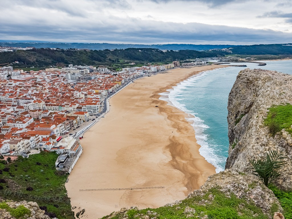 Nazaré’s claim to fame is its huge waves at Praia de Norte, 15 to 20 metres or more at their highest thanks to a massive underwater canyon. We stopped at Praia de Norte, on the north side of Nazaré, but the waves were very quiet during our early December visit. Check wave prediction sites to try to see the big waves, generally October to March.