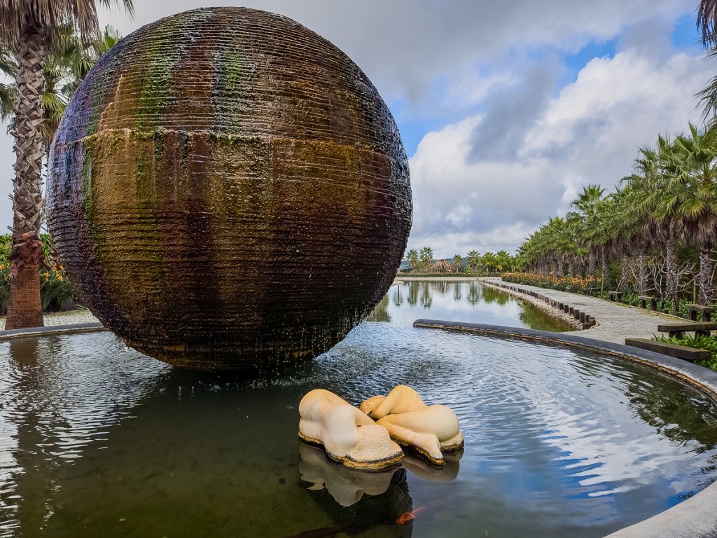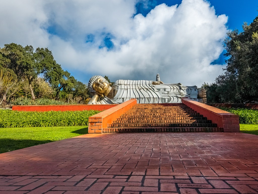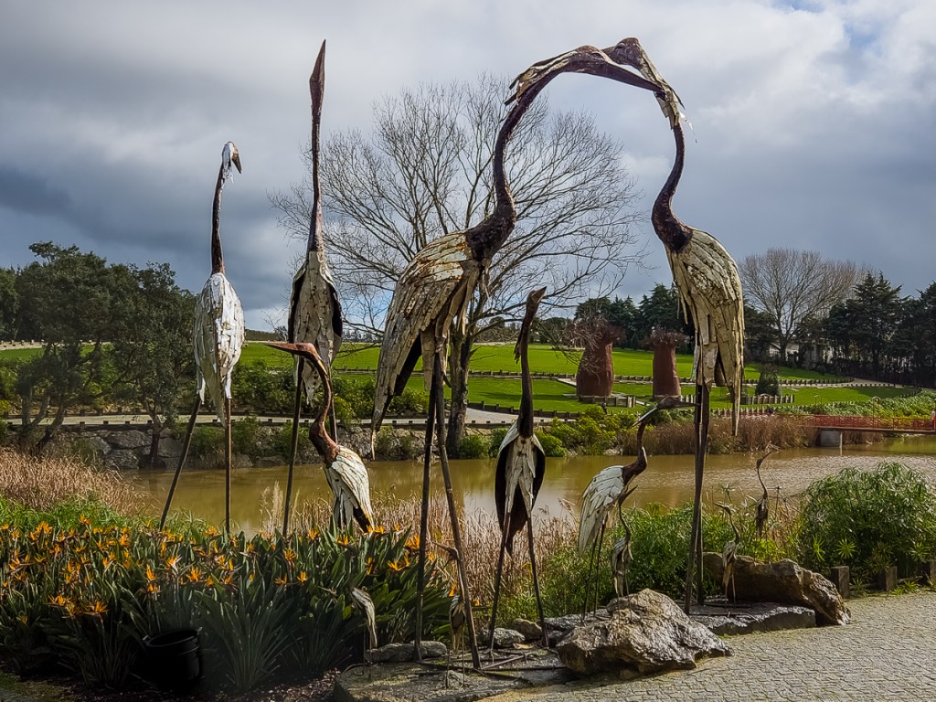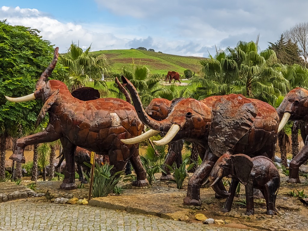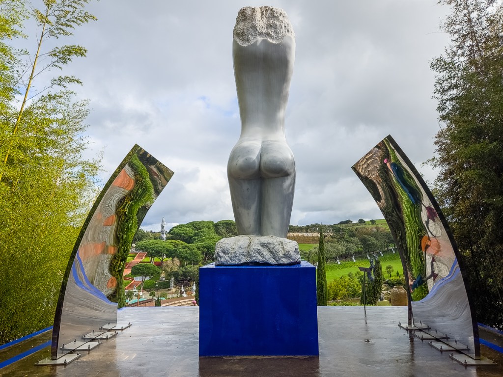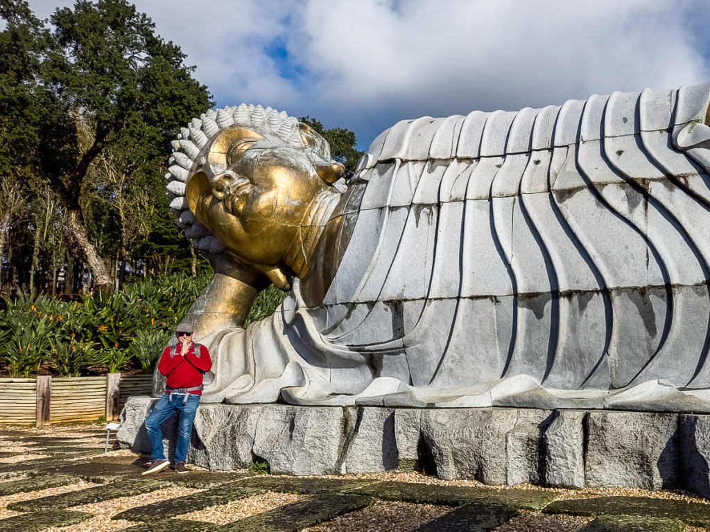 This sculpture garden was a wonderful outing from Óbidos, one we probably wouldn’t have been able to do without the use of a car. Connected to Bacalhõa Winery and part of the brand’s Art, Wine and Passion project, it was built in response to Taliban destruction of thousand-year-old Buddha statues and art pieces in Afghanistan’s Bamiyan Valley. Also called the Buddha Eden Garden of Peace, this 35-acre park houses sculptures and water features in a park-like setting. We were a little overwhelmed when we first walked in, unsure of which way to turn. We let our feet guide us and spent three hours discovering all sorts of visual delights. The exit takes you through a wine store showcasing Bacalhõa products.
