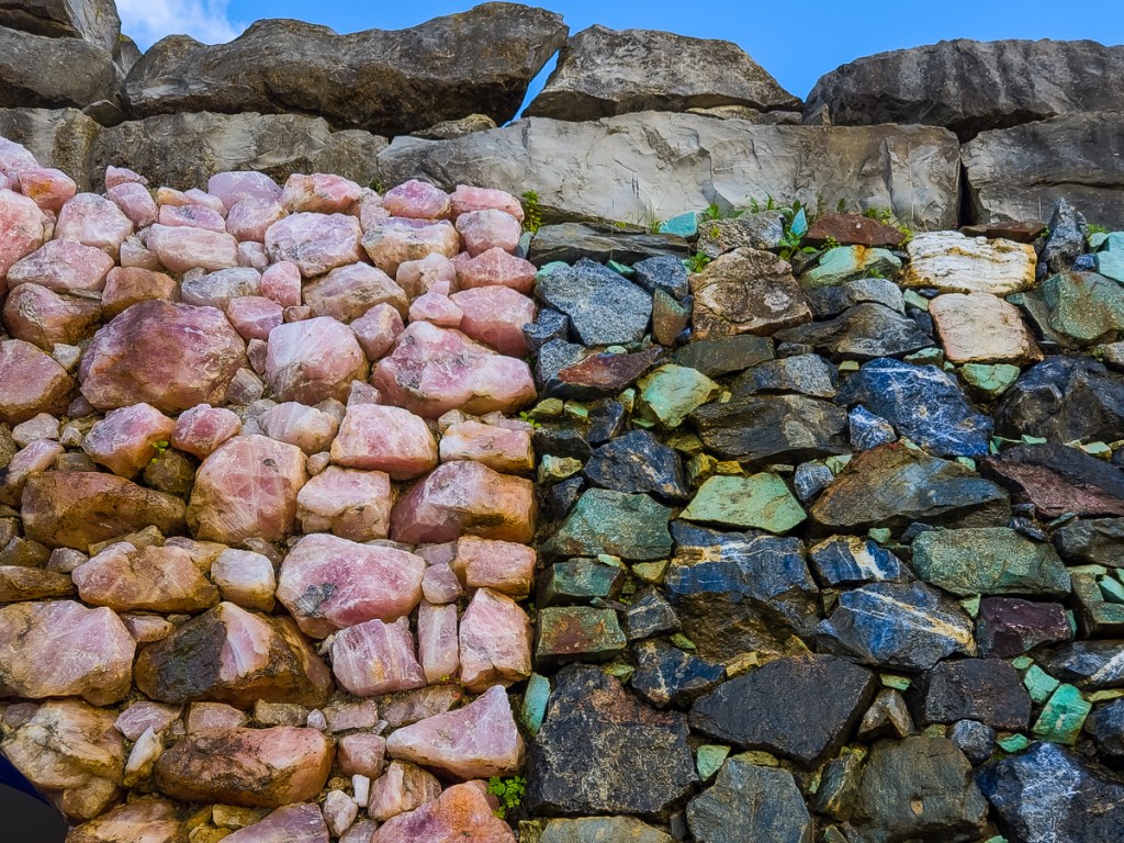 Colourful rocks used to face the washroom facility