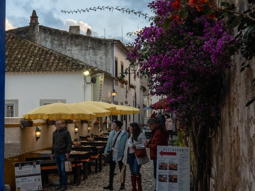 Óbidos is a quaint, medieval, walled village filled with homes, shops, and restaurants. A large free parking lot just outside the gate walls made visiting the walled medieval city of Óbidos easy. Since we were staying nearby we ventured in several times, including for dinner with another nomadic couple who were staying in the village for a couple of nights.