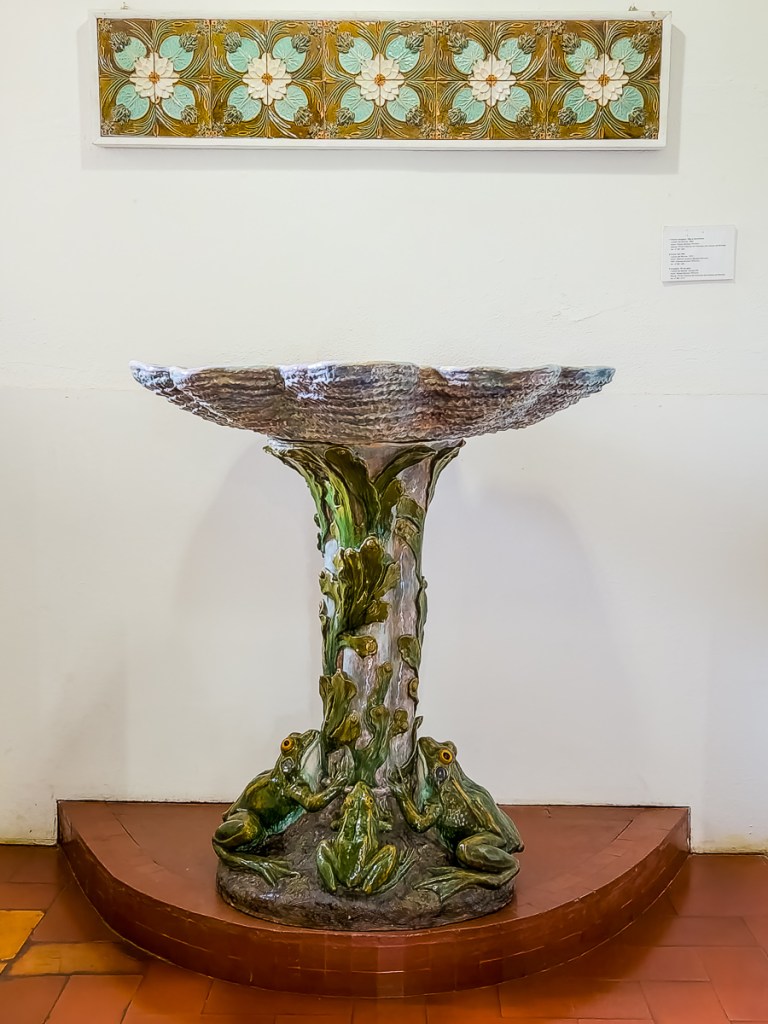 Caldas da Rainha is the nearest larger city to Óbidos, and where we would be returning our rental car and boarding our bus to Lisbon. It’s not a particularly pretty city but is known for its ceramics factory and store, and the ceramics museum. We walked to the Museu da Cerâmica, which is housed in a 19th-century manor, paid our small entry fee, wandered a bit in the gardens and then entered the house. The fellow at the door let us know that there were three floors to view. After a bit, he reminded us that there were still two floors and we didn’t have much time since he would be locking up for his lunch break. We rushed through and managed to see everything, if a bit more briefly than we would have liked.