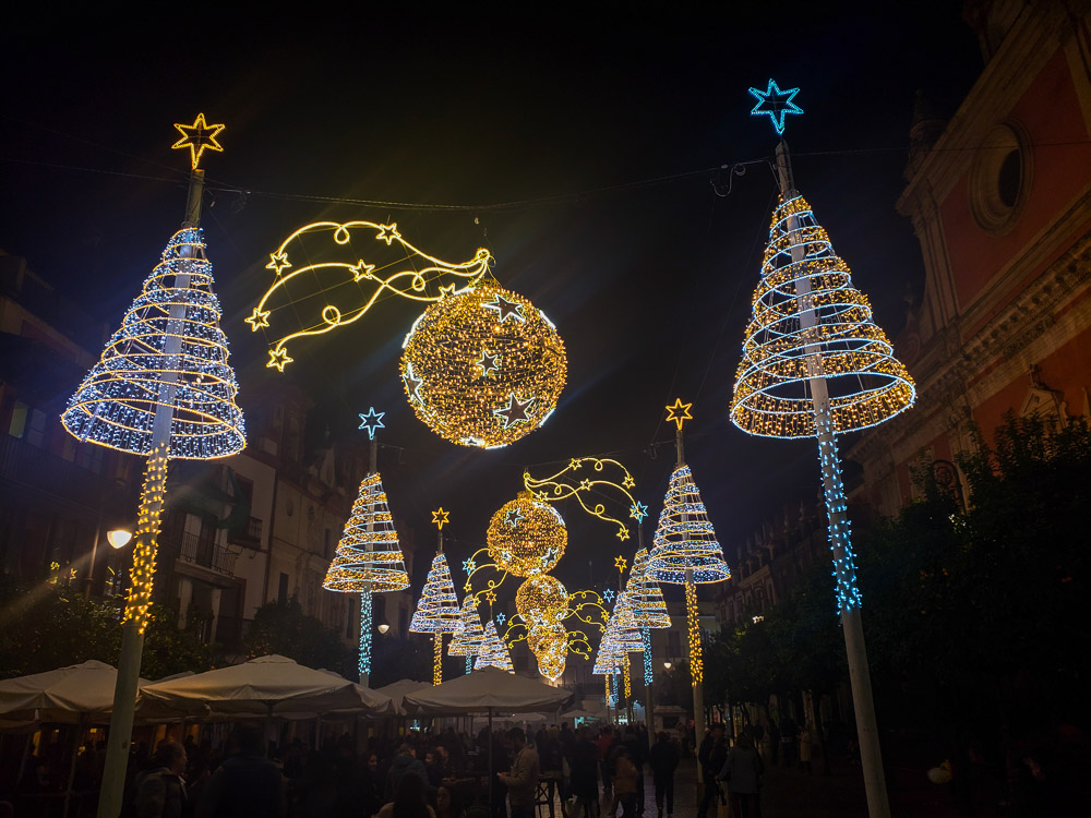 The Christmas lights in Seville were pretty fantastic. We were not alone on the evening we chose to go into town to see them. The streets were filled with people just walking and talking and enjoying the lull in events between New Year’s Eve and Epiphany.