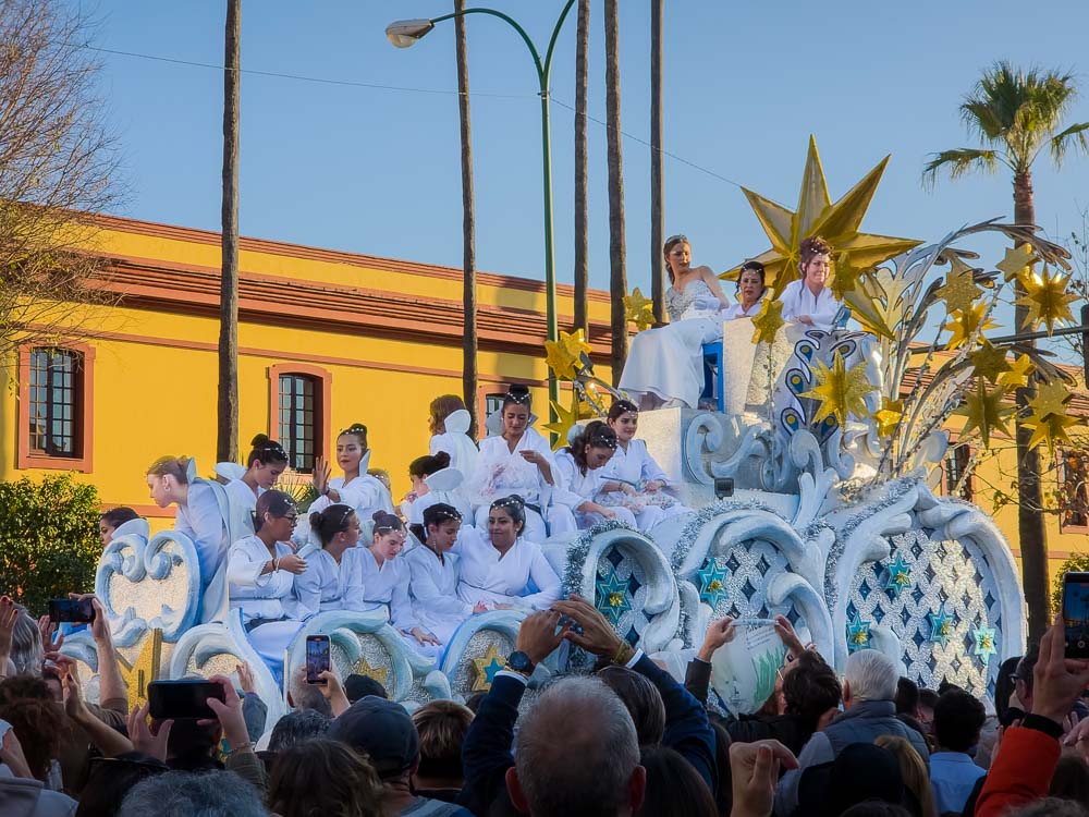 Epiphany, or Three Kings’ Day, is a Christian holiday, celebrated on January 6, to mark the arrival of the three wise men (magi) who brought gifts to the baby Jesus. In Spain it is celebrated with a parade in many towns and cities, and the parade in Seville is a big one. We were looking forward to sharing this craziness with Alex.