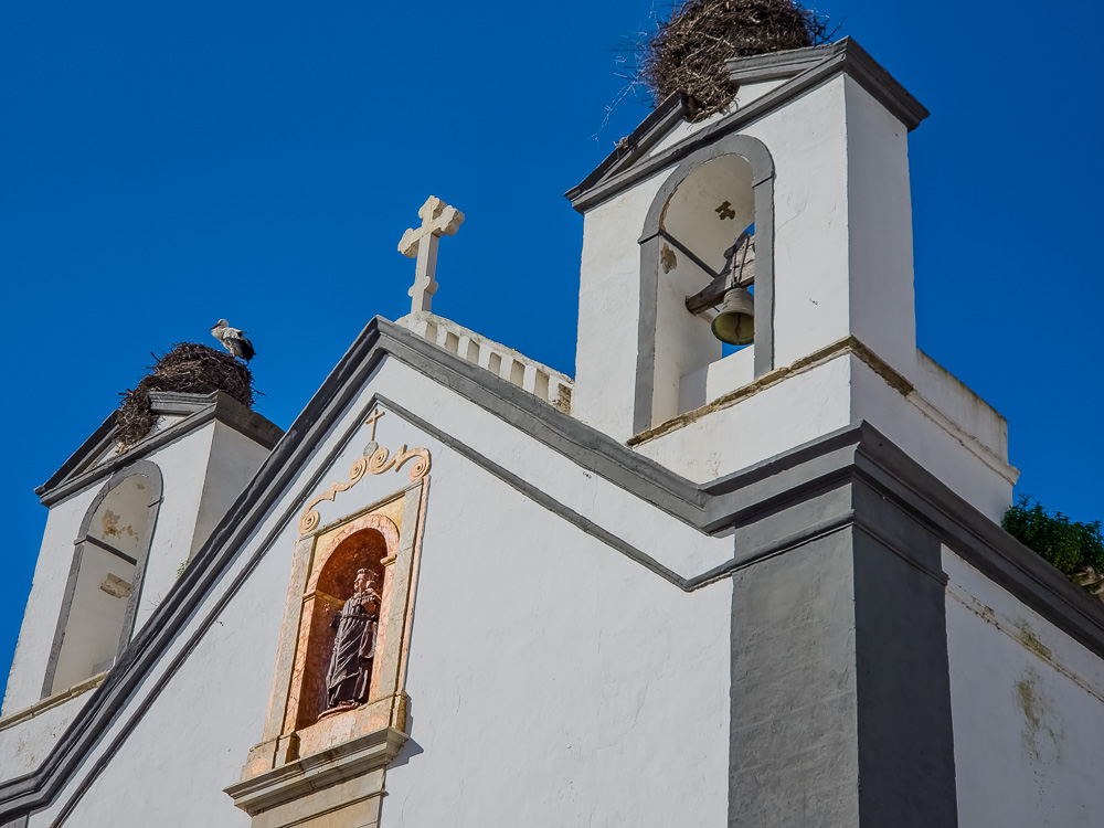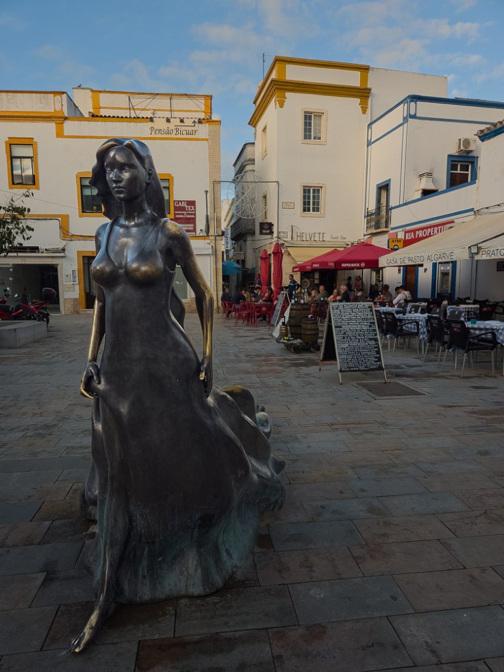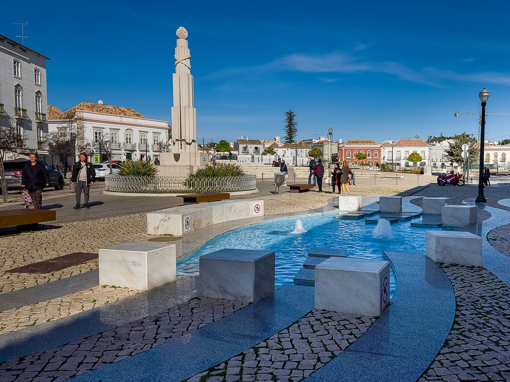 Tavira is positioned along the coast and includes part of the Ria Formosa, but the main part of the town is a little bit up the Gilão River from the ocean’s edge. We parked near Praça Dr. António Padinha across the river and then walked the arched Ponte Romana de Tavira (or ponte antiga–old bridge) to explore the town. The current bridge, built on the foundations of a first-century Roman crossing, feeds pedestrians right to Praça da República, the main plaza.