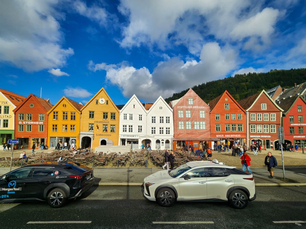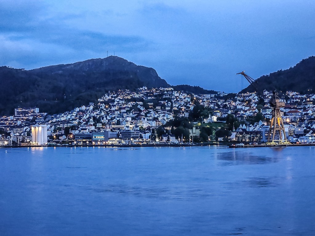 We arrived in Bergen on a delayed flight from Prague. Though we had plenty of time to get to the ship despite the delay, we had planned to spend at least an hour or two exploring Bergen before we embarked. The flight delay changed that plan. We felt quite lucky when the transport from the airport to the ship (booked through Hurtigruten) was a bus that made several stops in town, giving us an almost hop-on-hop-off experience of Bergen. I grabbed a few highlight pics through the bus window.