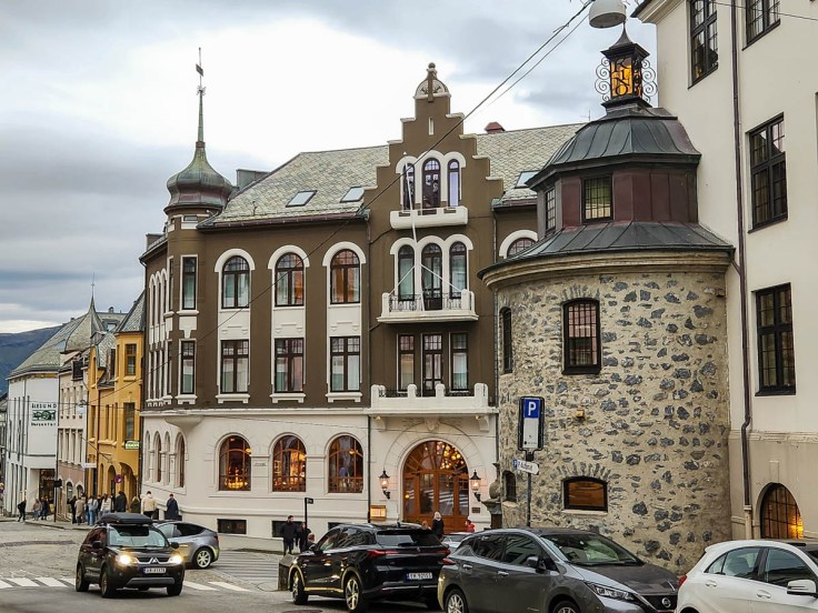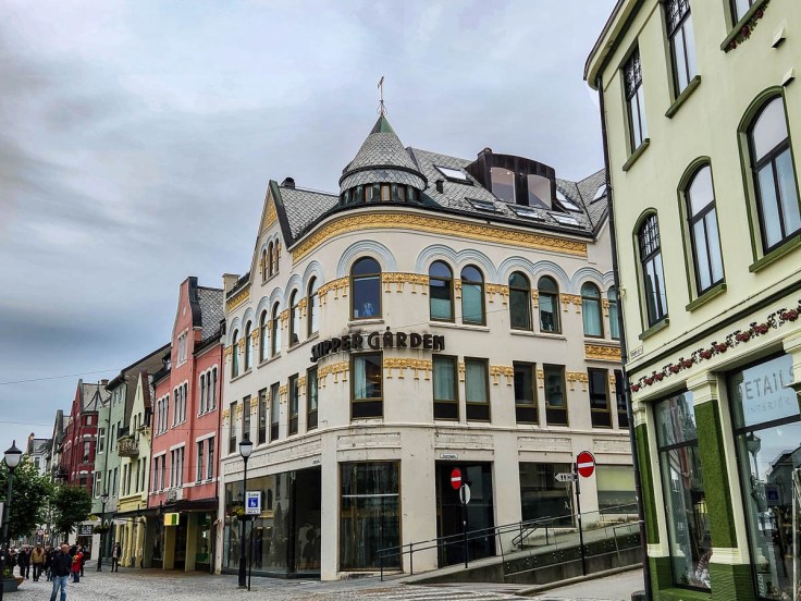 We arrived in Ålesund, at the entrance to Geirangerfjord, at 6:00pm. We were only there for two hours but the dock was quite close to town and it stayed light enough to wander about, so we were able to see a decent amount of the town in the short time we had.