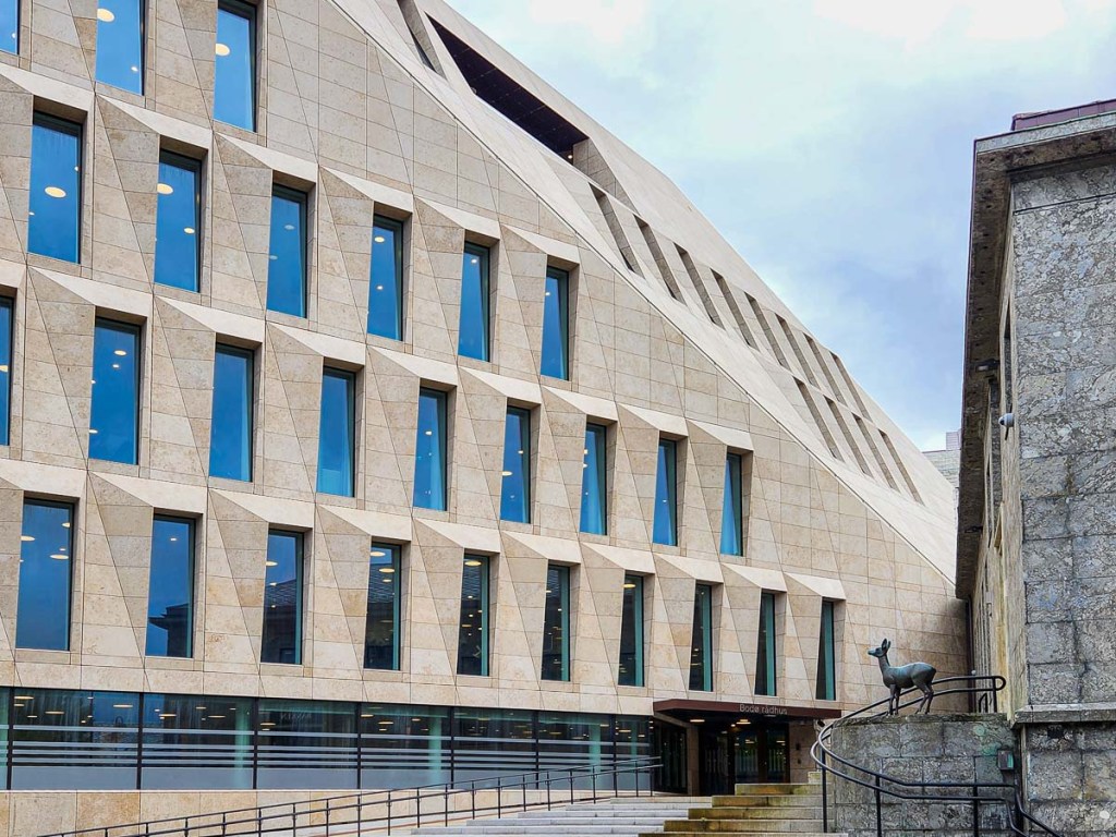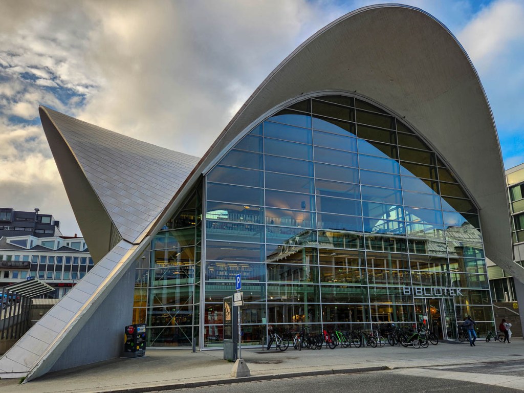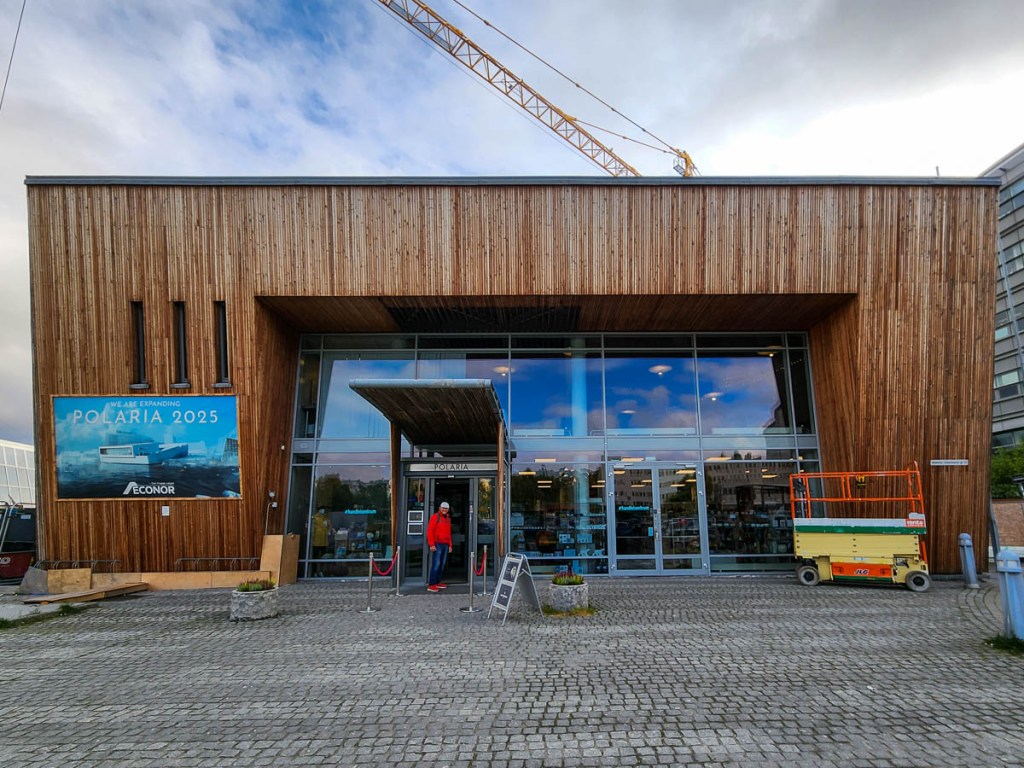 Tromsø takes up one island and spills over across a bridge to the mainland. I had been most interested to see Polaria, the aquarium, for its unique architecture. It looks like concrete blocks that had been standing on end and then one fell over, knocking the others down like dominoes. I was a little saddened to arrive and find it under construction and behind fences, but we could still see the crazy design. Visitors in 2025 will be able to view the completed expansion.