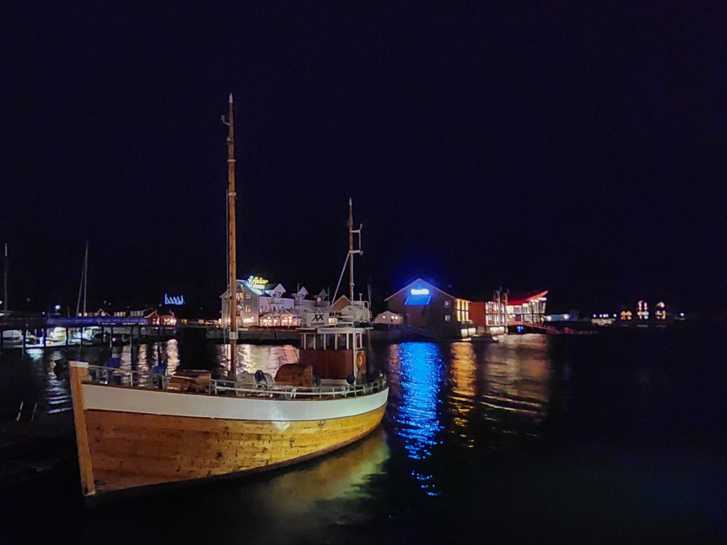 Stamsund and Svolvær were both evening ports. We were only in Stamsund for 25 minutes, but the view from the ship’s deck of the giant rock was intriguing. It was dark by the time we arrived in Svolvær, and we were there for just under an hour, but we took the opportunity to dash out in the drizzle.