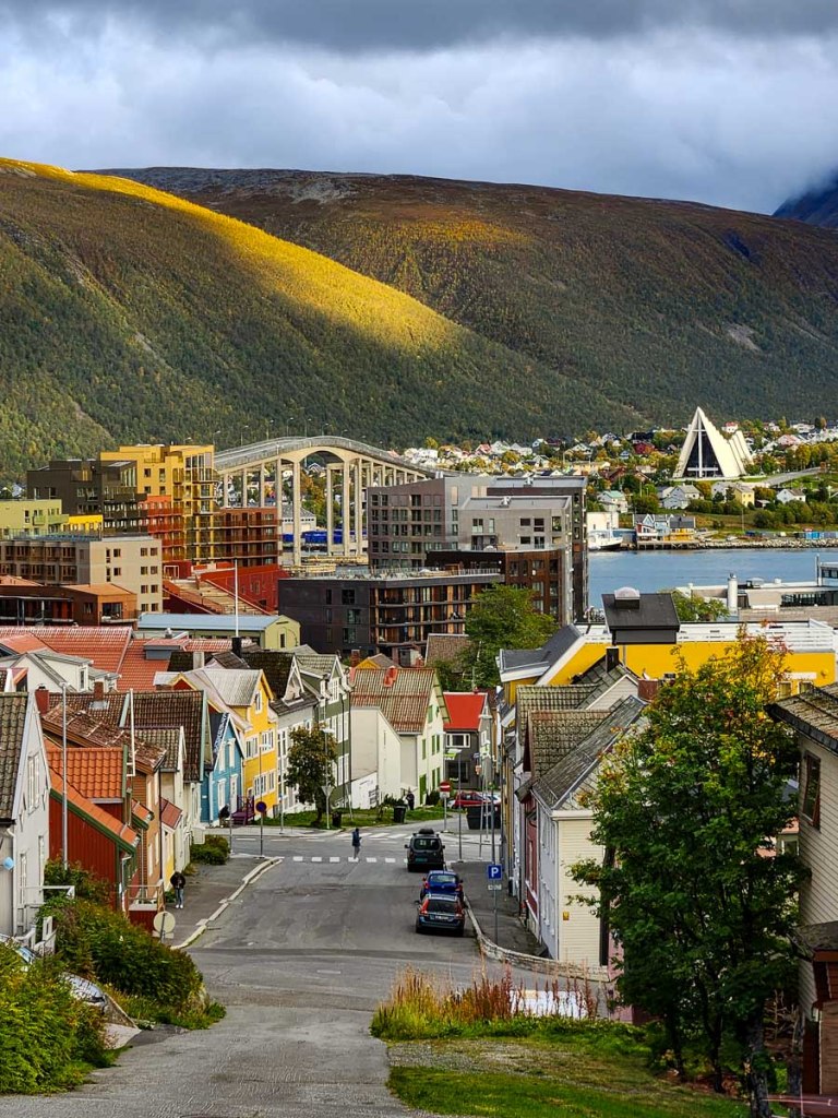 After visiting Svolvær, the ship made three port stops in the middle of the night. Again, we were completely unaware and slept through all of them. We got to Finnsnes at about 11:00 in the morning but didn’t stop long enough to explore. The three-hour route from there to Tromsø was beautiful as the autumn colours were beginning to show themselves.