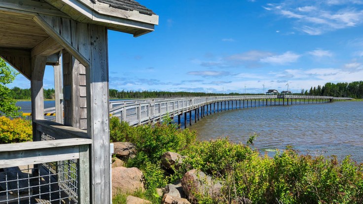While wandering along the river pathway, we found ourselves blocked by fencing, behind which was the type of activity that suggested an upcoming event. When we discovered that a Rotary BBQ festival would happen before we left Moncton, we made plans to attend. As well as enjoying some delicious BBQ, we were overwhelmed by the generosity of the volunteers who insisted (and I mean insisted–including waiting in the lineup in the rain) on buying a replacement for the piece of chicken they saw me drop when the cardboard takeaway container failed as we were leaving the grounds.