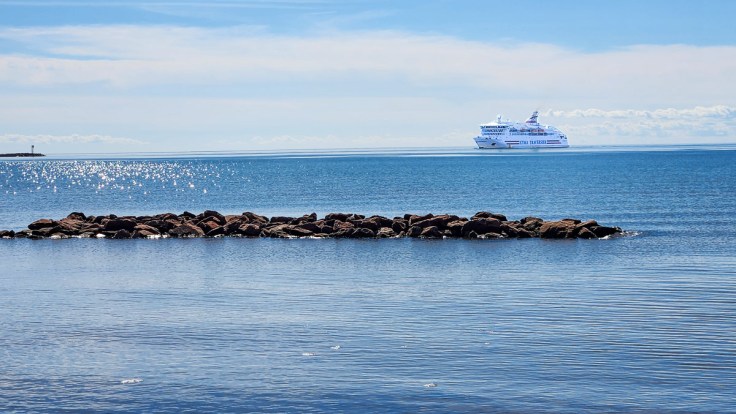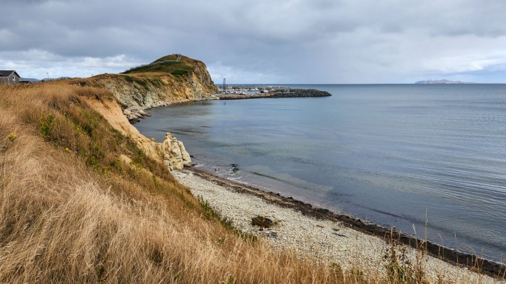 We had a beautiful view over the ferry port from our room. On the other side of the ferry port, the stairs leading up to the observation platform called to us each day before we finally gave in and climbed them. Beyond the lookout, we walked along a paved pathway along the east coast and could see the effects of erosion as well as the work that was being done to reinforce the beach and protect the land.
