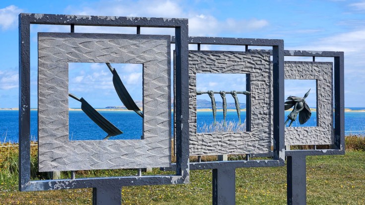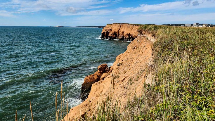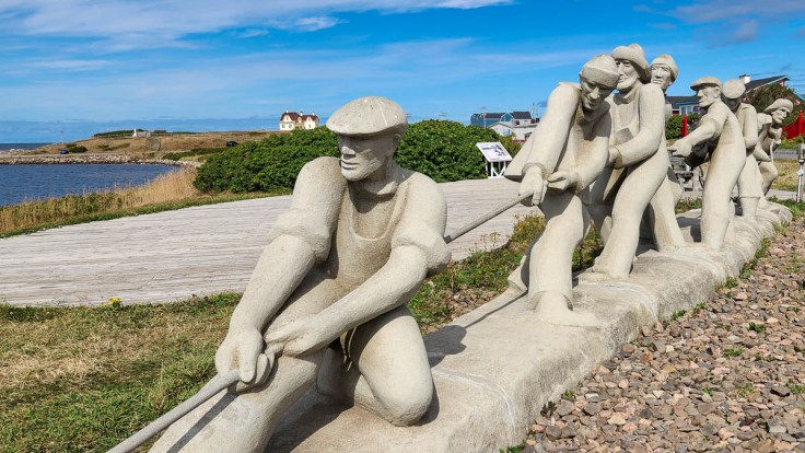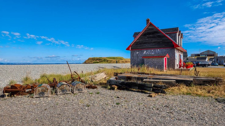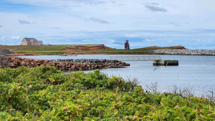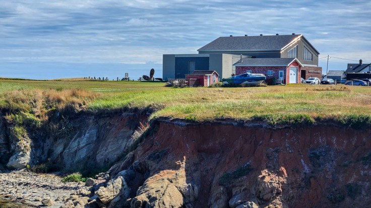 On the southern-most island, our target was La Grave, an artsy community at the south-eastern site of the first settlement on the islands. It is made up of many historic buildings that are now galleries, shops, and cafés, most of which are only open seasonally during the summer. Perched on a cliff is the maritime museum, Musée de la Mer des Îles de la Madeleine, behind which we found ocean-themed sculptures and great views of Entry Island and Sandy Hook.