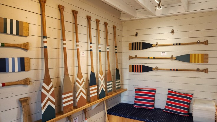 Beautiful paddles on display in a coffee shop