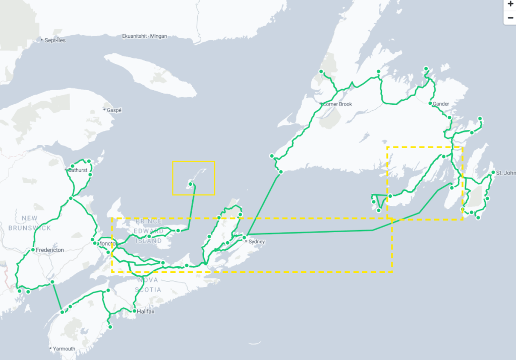 From one set of islands (St. Pierre and Michelon) to another island (Newfoundland) and then another island (PEI), and still another set of islands (Îles-de-la-Madeleine). This transfer took us through two countries (France and Canada) and five provinces (Newfoundland, Nova Scotia, New Brunswick, PEI, and Quebec). What a whirlwind!