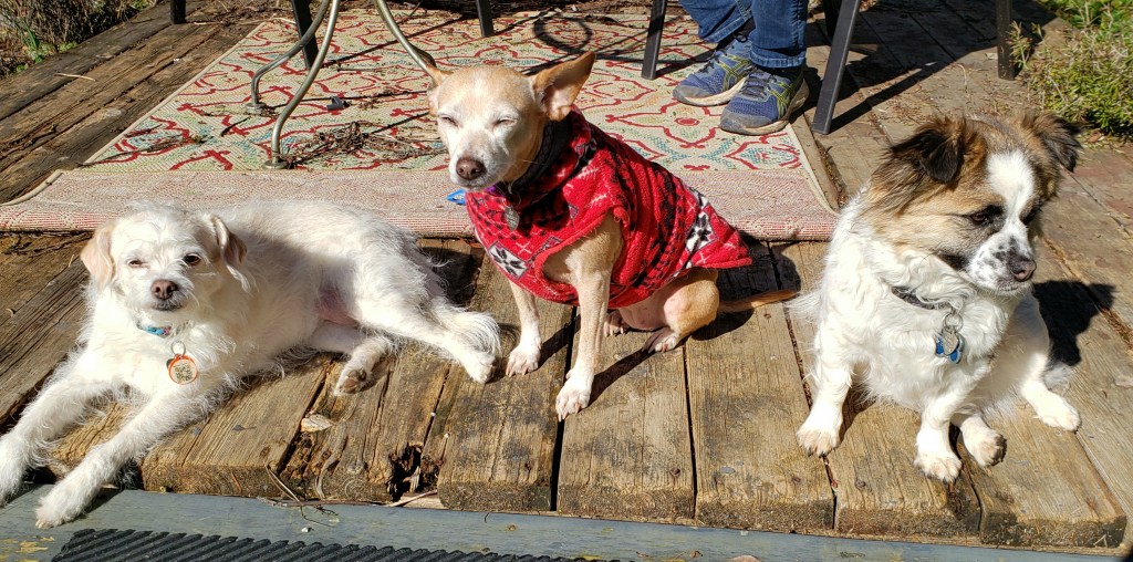 • 3 dogs, Syd and Leia (12-year-old Jack Russell Terriers), Molly (4-year-old Jack-a-Doodle)
